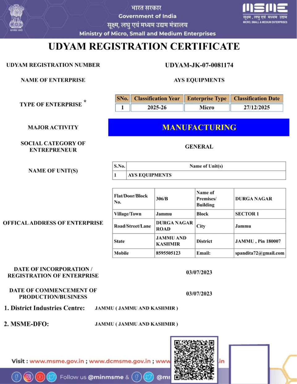 AYS EQUIPMENTS, an ISO 9001:2015 certified company, was established in 2020 and is rapidly becoming one of the leading suppliers of construction equipment for road and building construction projects.